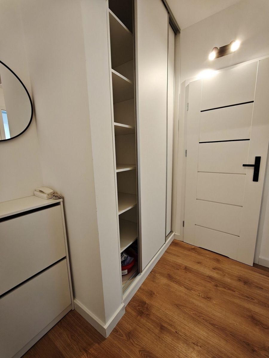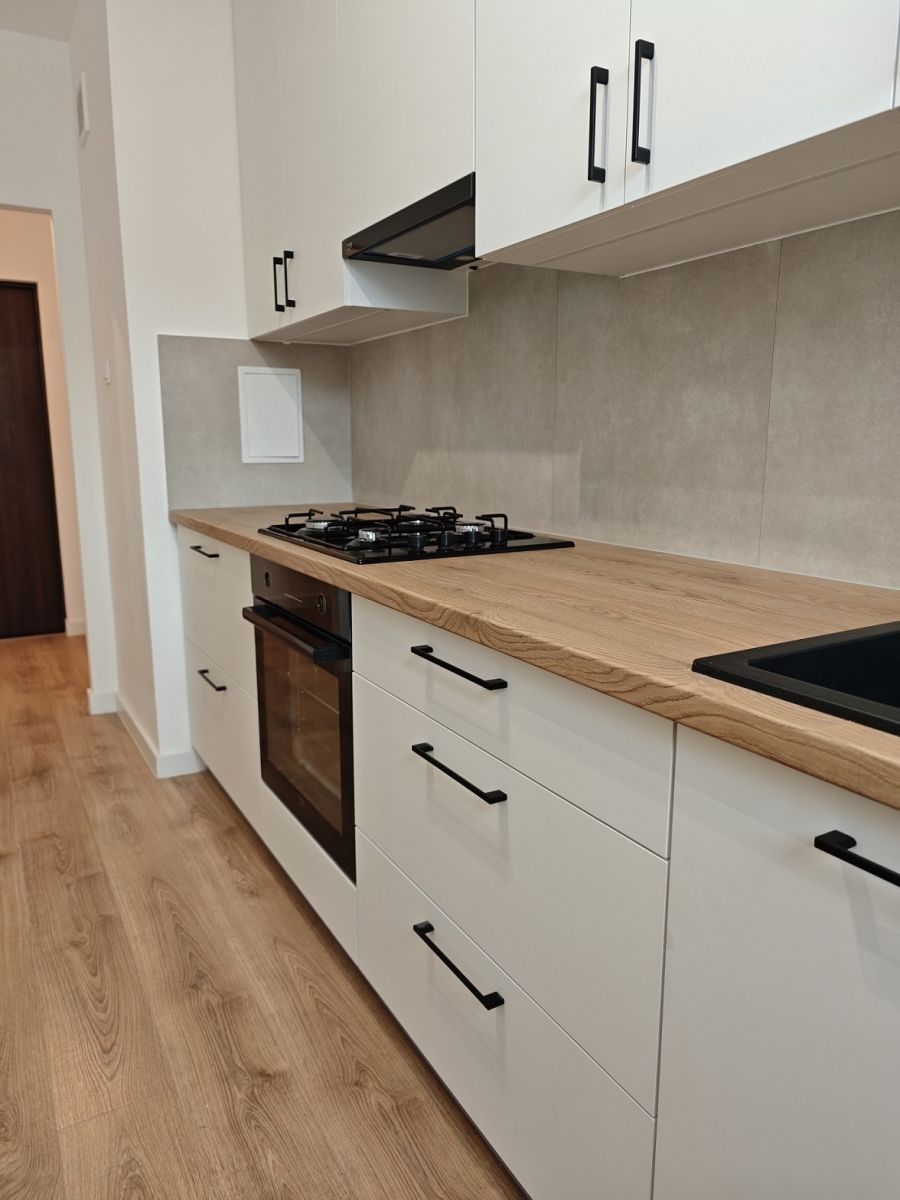 Wnętrza mieszkania są jasne, nowoczesne i urządzone z dbałością o szczegóły, w wysokim standardzie i gustownej kolorystyce. Meble są jeszcze nieużywane, co zapewnia pełną świeżość i gotowość do wprowadzenia się. Przestronny salon z wyjściem na balkon stanowi idealne miejsce na relaks i spotkania, a oddzielna kuchnia, sypialnia, łazienka i korytarz dopełniają funkcjonalnego układu mieszkania.